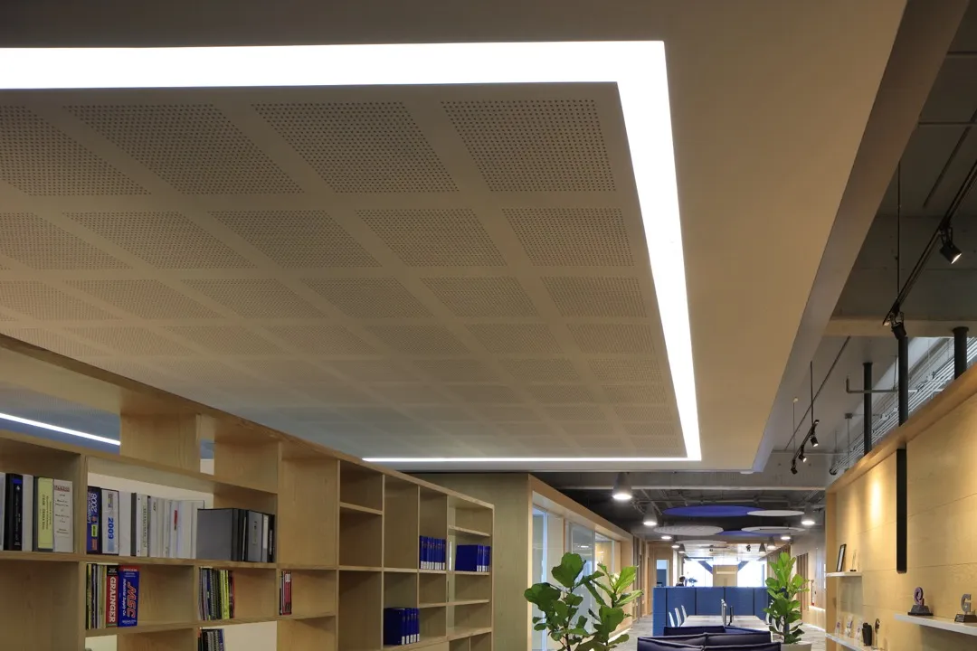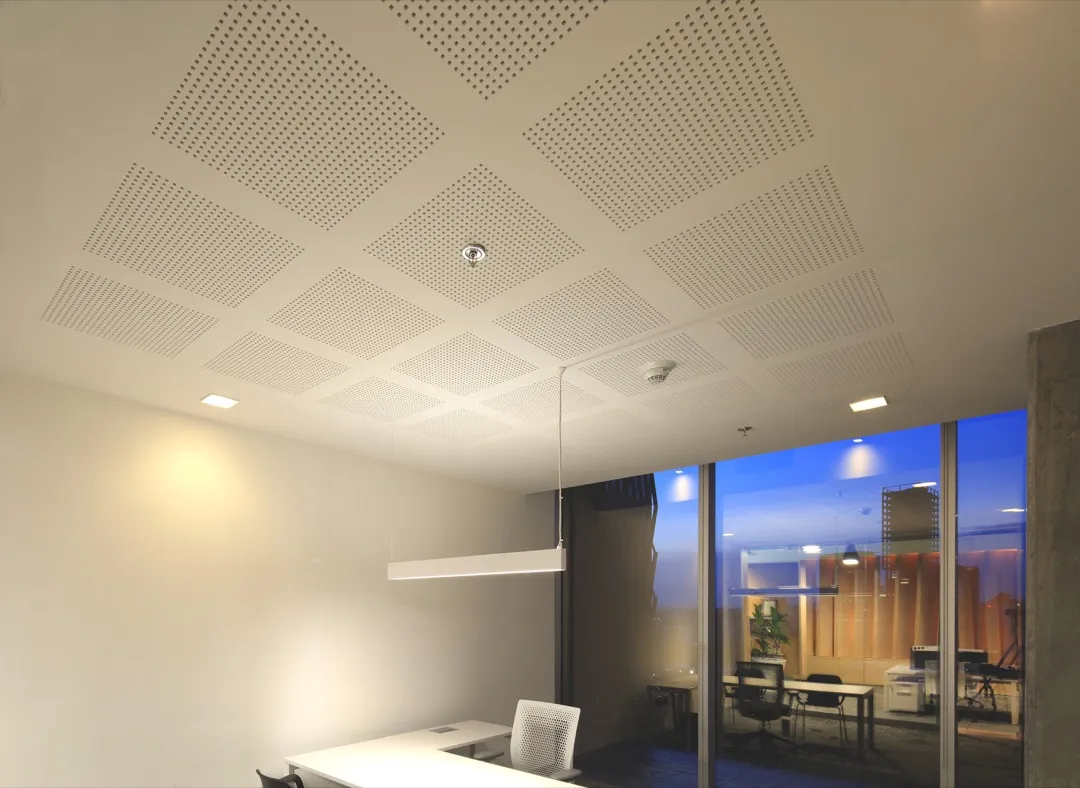 - Panel de yeso acústico con acabado en blanco.