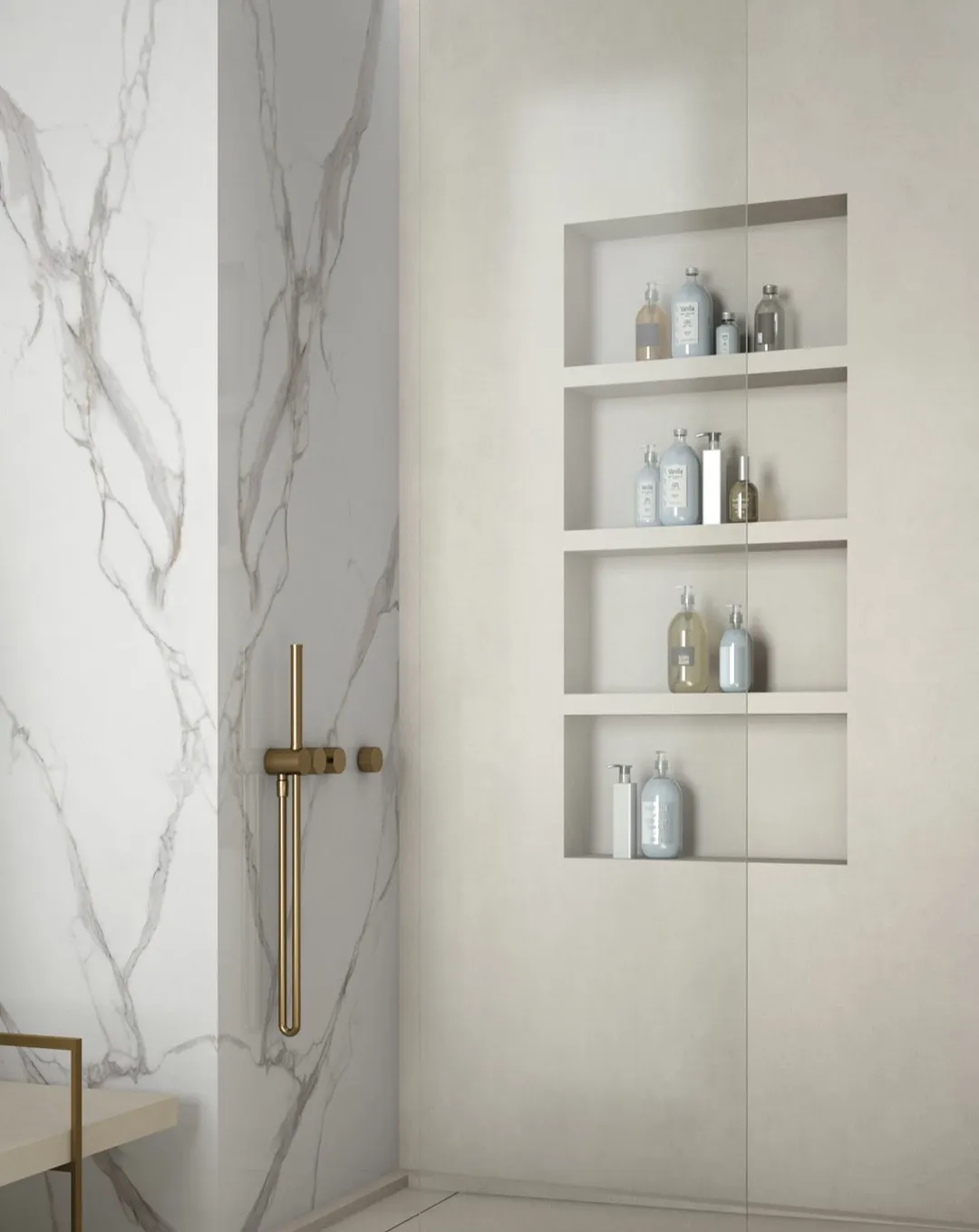- mármoles clásicos y materiales contemporáneos