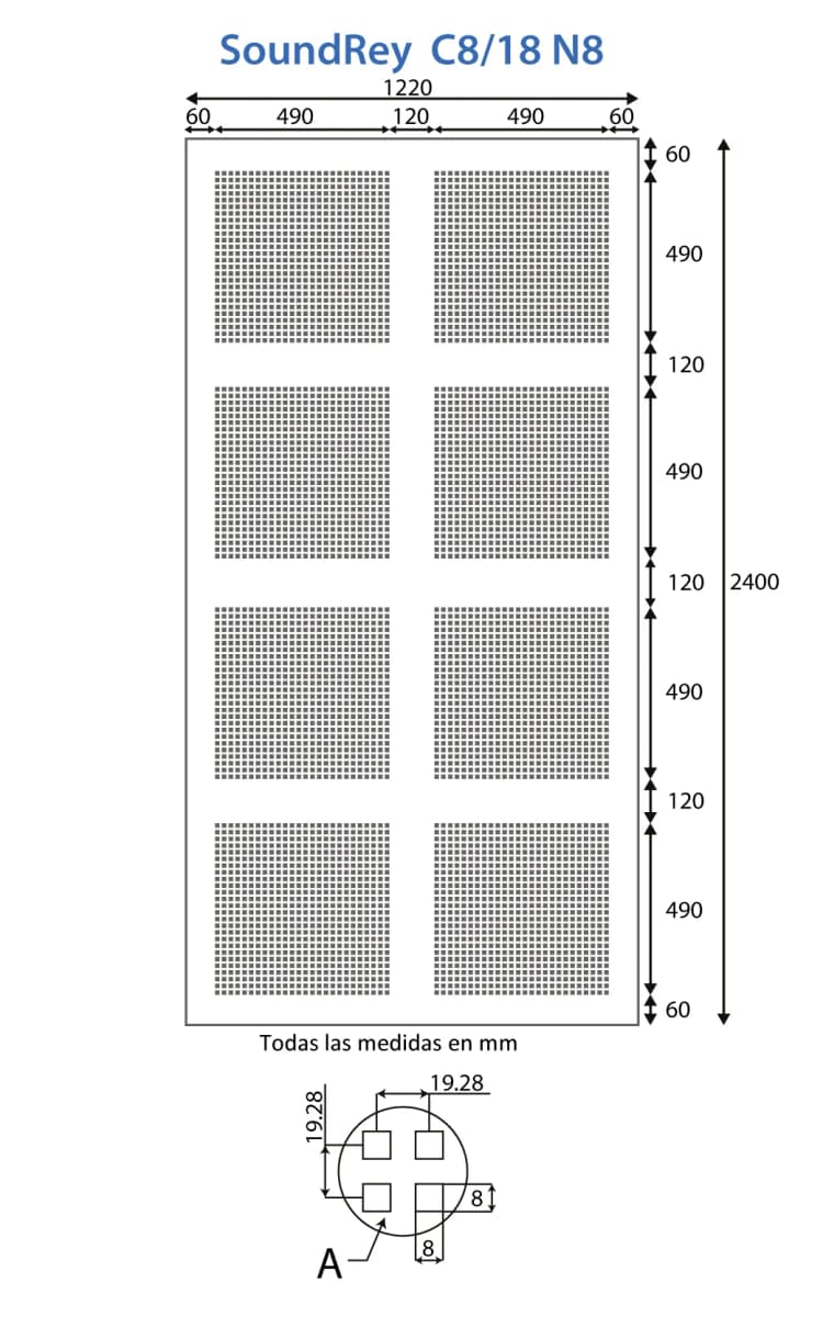 Plancha Acústica Sound Rey C8/18 N8 (perforación en cuadros segmentado. (528790) 4' x 8' - 1/2"